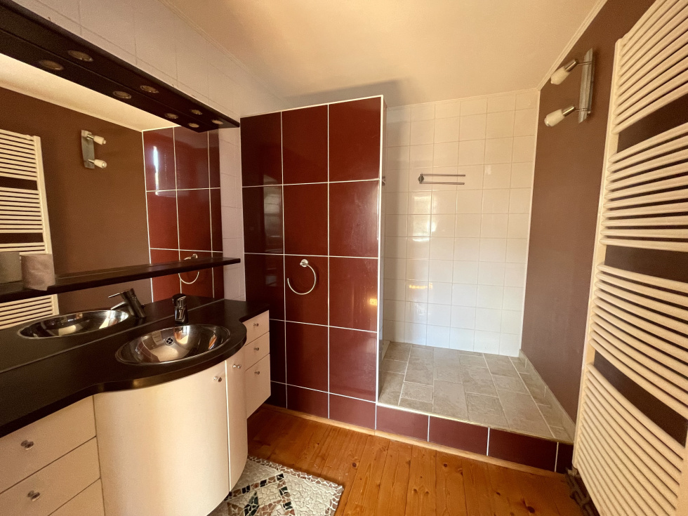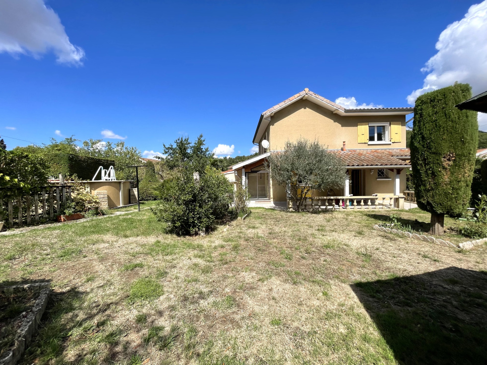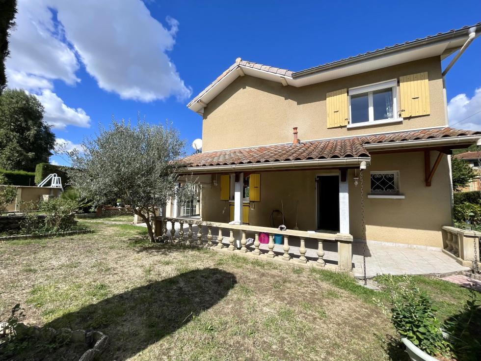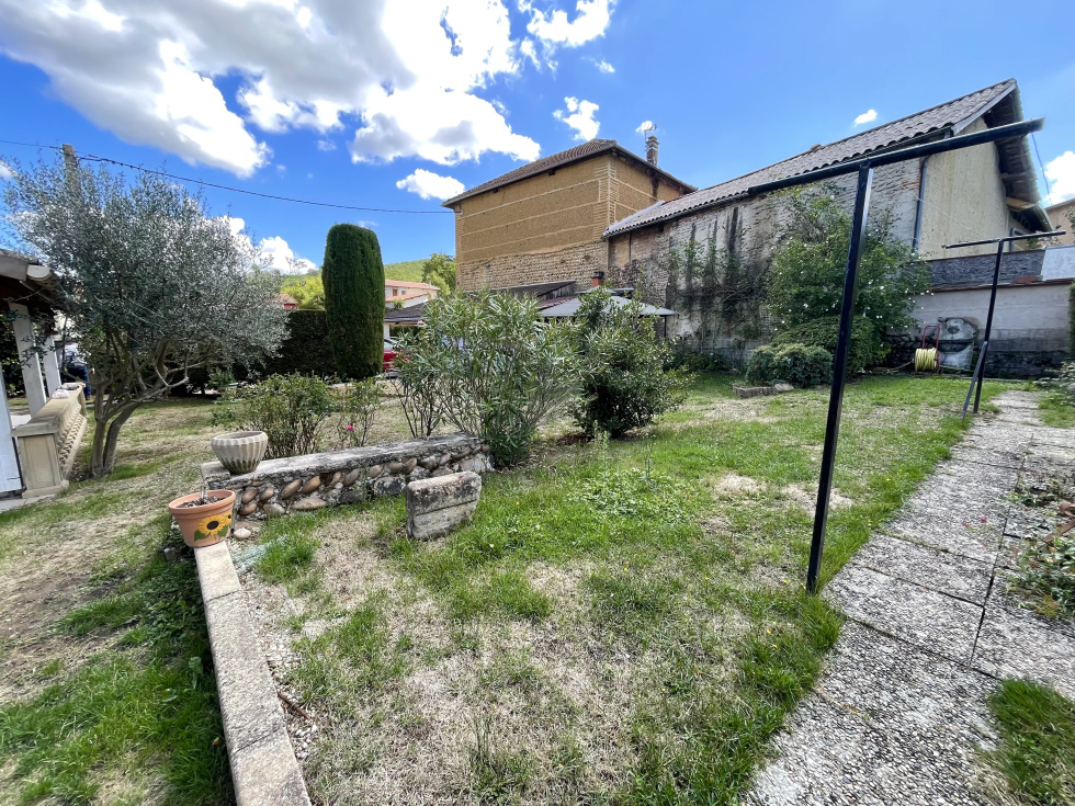 Idéalement située en plein cœur du centre-ville, cette maison de caractère d'environ 148m² des années 1900, agrandie par une extension, offre un cadre de vie unique, sans aucun vis-à-vis. Au rez-de-chaussée, vous serez accueilli par une entrée qui mène à une cuisine équipée, ouverte sur une véranda agréable et lumineuse. L'espace se poursuit vers un salon/séjour réchauffé par un poêle à granulés. Une chambre, une salle de bains et un WC séparé complètent ce niveau. À l’étage, la maison dispose de quatre chambres, dont une suite parentale avec salle d’eau privative, ainsi qu’un second WC indépendant. Côté dépendances, vous bénéficierez de deux garages avec portail électrique, d’un atelier, d’une cave et d'une cuisine d'été. À l’extérieur, un jardin arboré d’environ 1 265m² accueille une piscine hors sol. Chauffage gaz propane - Tout à l'égout - Double vitrage PVC & bois - Volets roulants & bois - Alarme - Source.